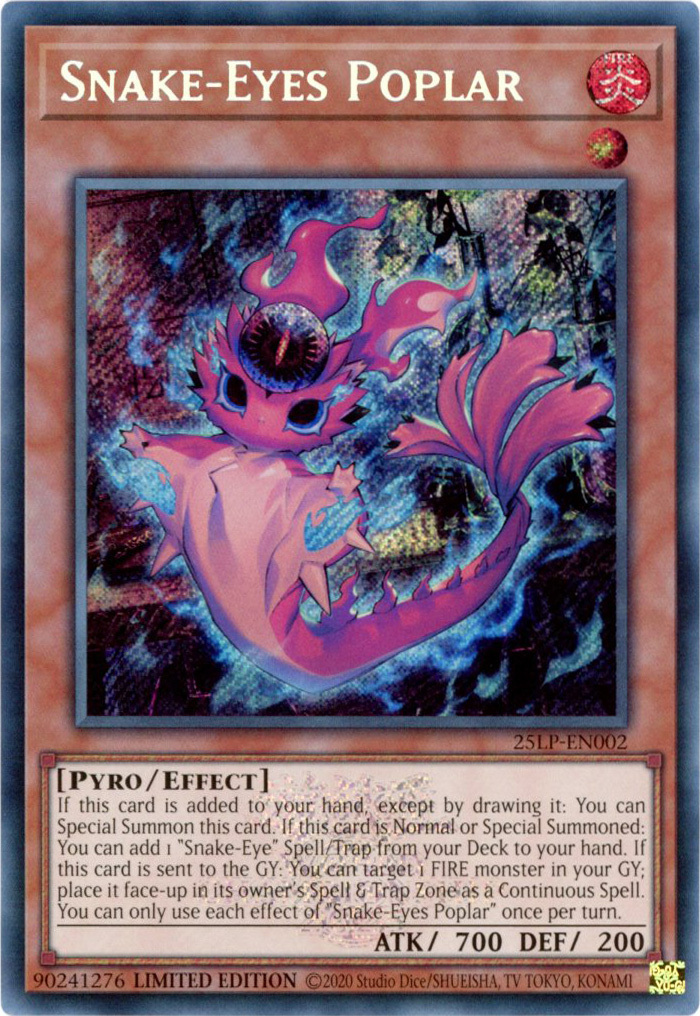 - 25LP-EN002 Snake-Eyes Poplar : Emblazoned Secret Rare (Special Stamped Version) Limited Edition Mint YuGiOh Card