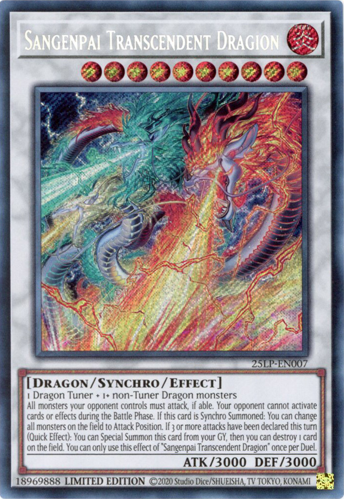 - 25LP-EN007 Sangenpai Transcendent Dragion : Secret Rare Limited Edition Mint YuGiOh Card