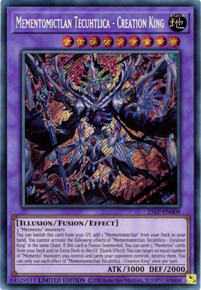 - 25LP-EN009 Mementomictlan Tecuhtlica - Creation King : Secret Rare Limited Edition Mint YuGiOh Card