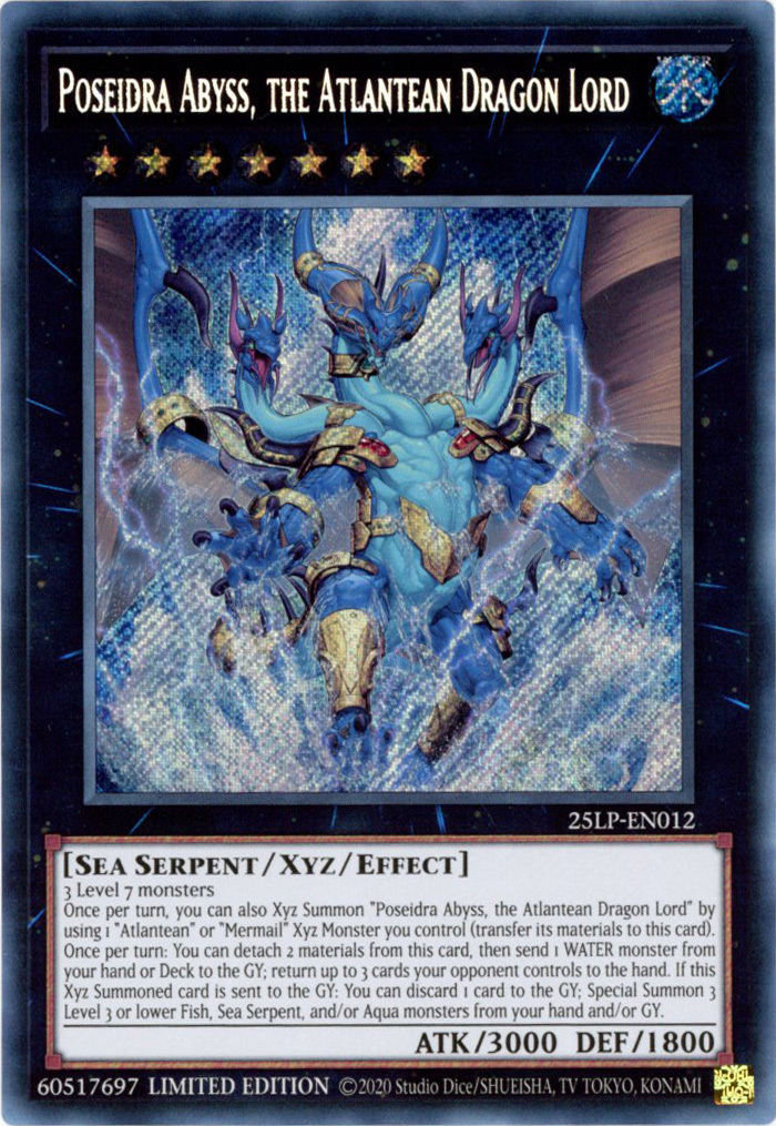 - 25LP-EN012 Poseidra Abyss, the Atlantean Dragon Lord : Secret Rare Limited Edition Mint YuGiOh Card