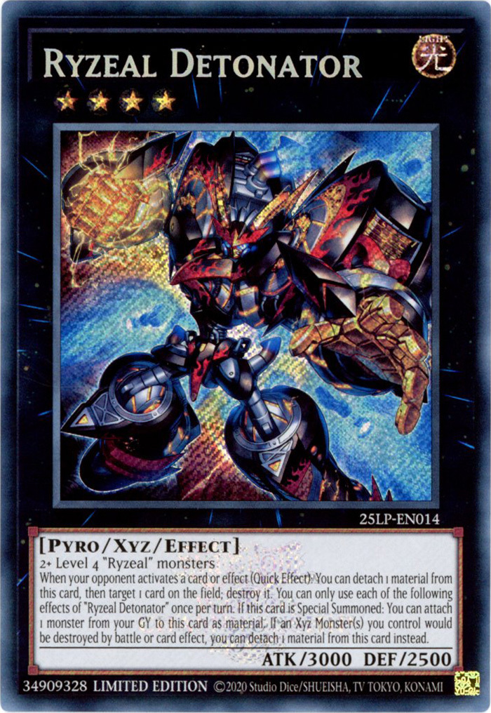 - 25LP-EN014 Ryzeal Detonator : Emblazoned Secret Rare (Special Stamped Version) Limited Edition Mint YuGiOh Card