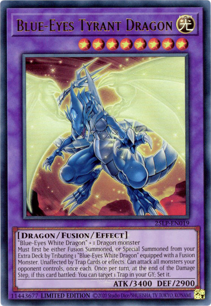 - 25LP-EN019 Blue-Eyes Tyrant Dragon : Emblazoned Ultra Rare (Special Stamped Version) Limited Edition Mint YuGiOh Card