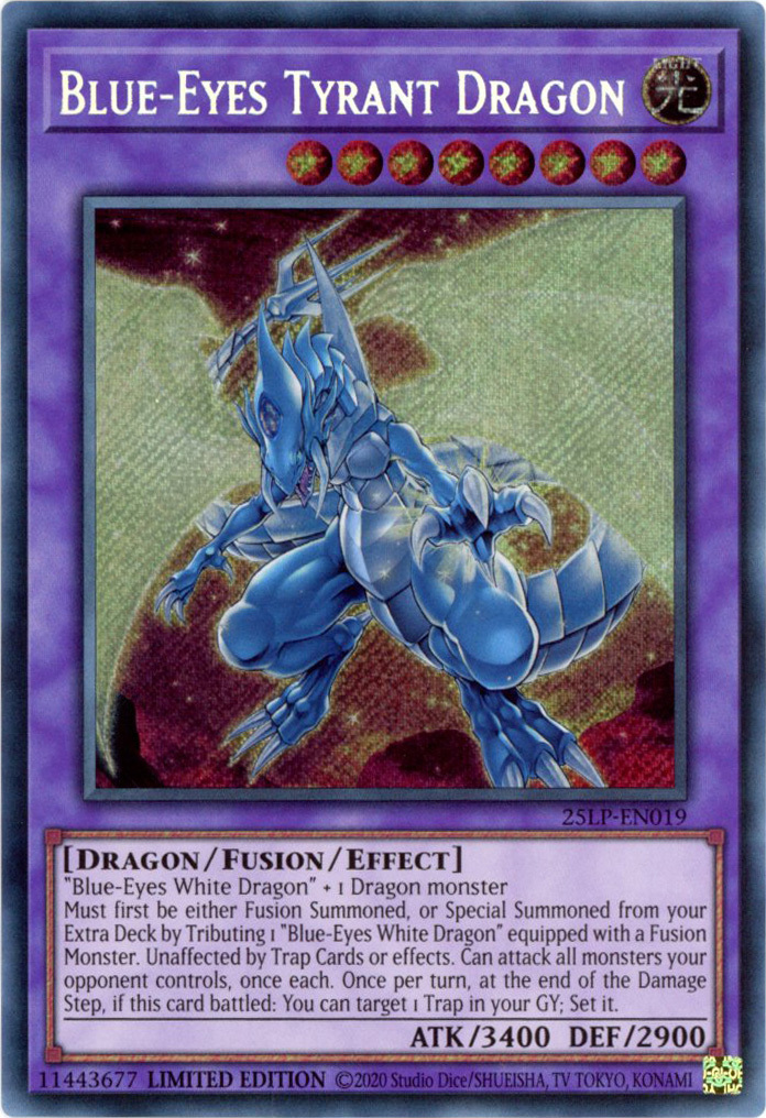 - 25LP-EN019 Blue-Eyes Tyrant Dragon : Secret Rare Limited Edition Mint YuGiOh Card