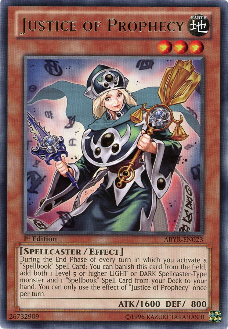 - ABYR-EN023 Justice of Prophecy Rare 1st Edition Mint YuGiOh Card