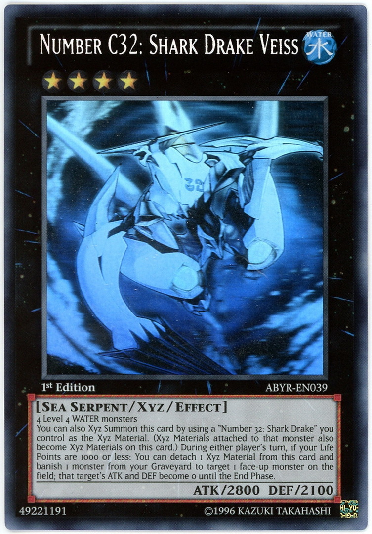 - ABYR-EN039 Number C32: Shark Drake Veiss Ghost Rare 1st Edition Mint YuGiOh Card