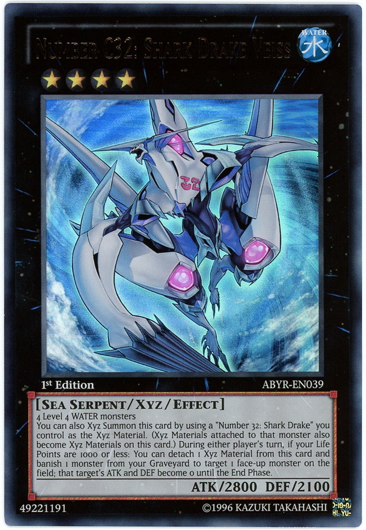 - ABYR-EN039 Number C32: Shark Drake Veiss Ultra Rare 1st Edition Mint YuGiOh Card