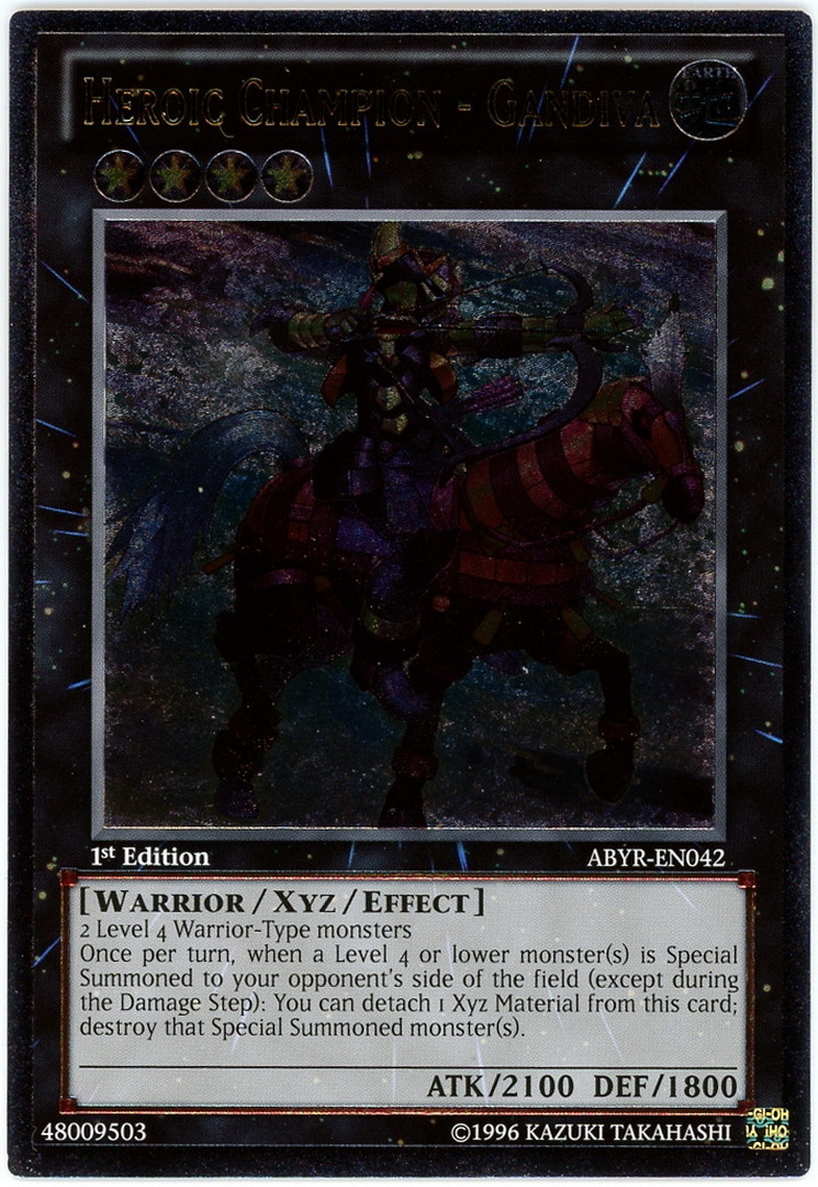 - ABYR-EN042 Heroic Champion - Gandiva Ultimate Rare 1st Edition Mint YuGiOh Card