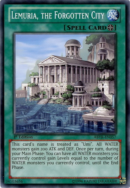 - ABYR-EN057 Lemuria, the Forgotten City Common 1st Edition Mint Yu-Gi-Oh! Card