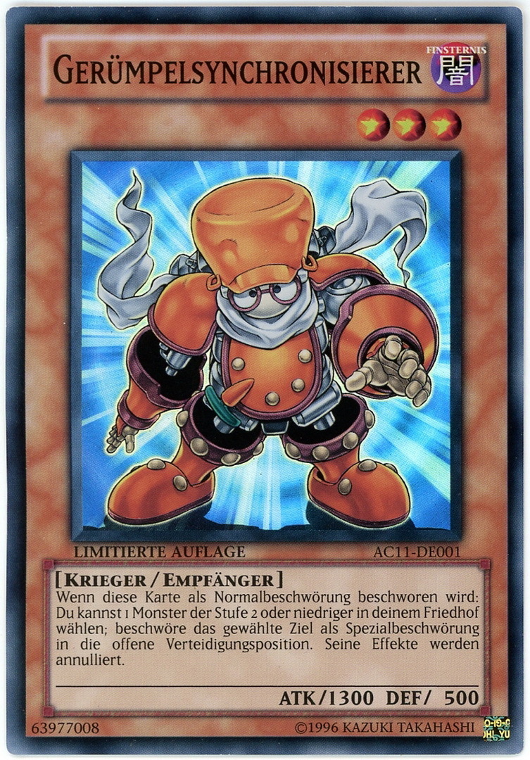 AC11-DE001 Junk Synchron Super Rare UK/US/Worldwide Tournament Legal Limited Edition GERMAN YuGiOh Card "Gerümpelsynchronisierer"