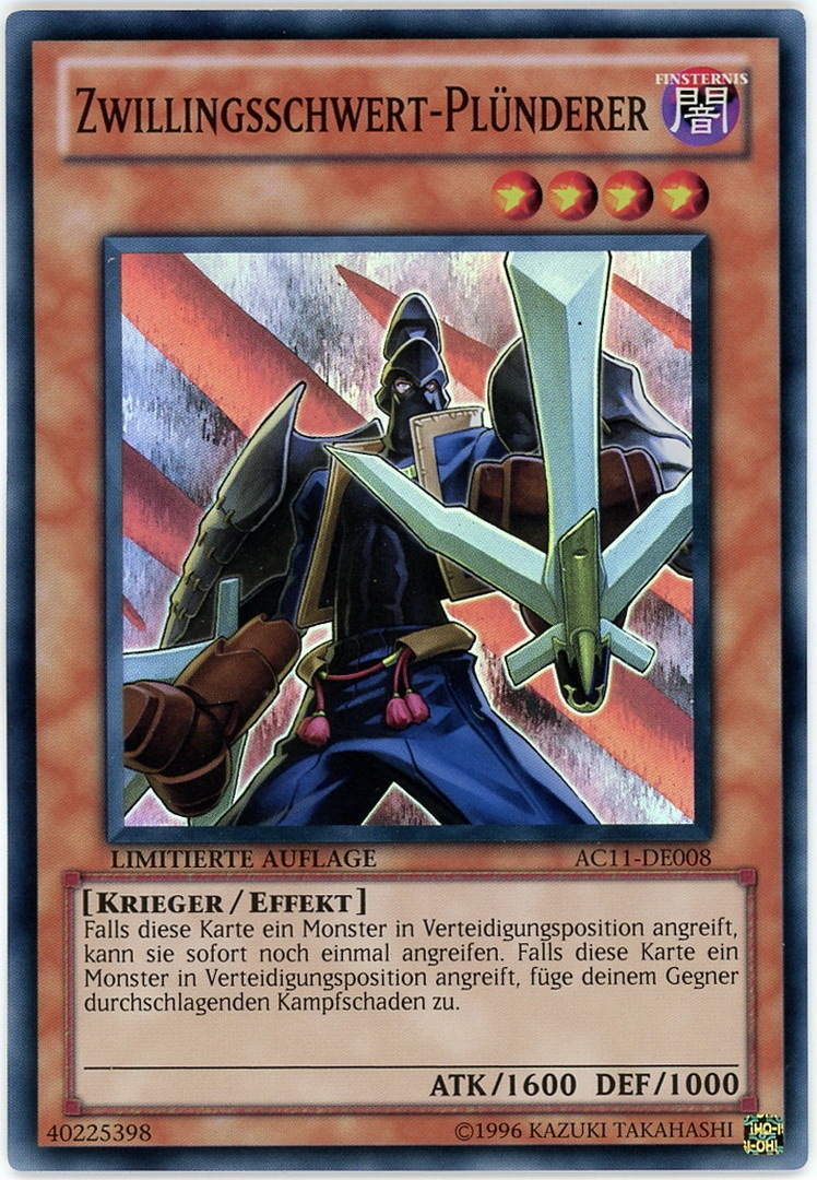 - AC11-DE008 Twin-Sword Marauder Super Rare UK Tournament Legal GERMAN YuGiOh Card