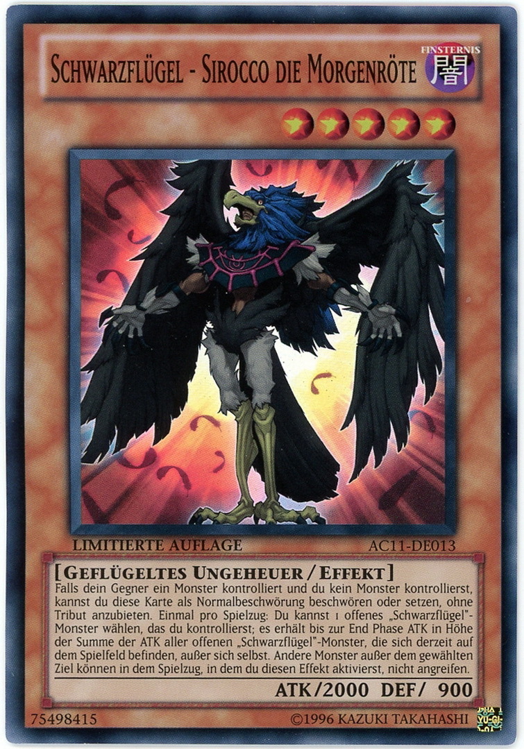 AC11-DE013 Blackwing - Sirocco the Dawn Super Rare UK/US/Worldwide Tournament Legal Limited Edition GERMAN YuGiOh Card - "Schwarzflügel - Sirocco die Morgenröte " -