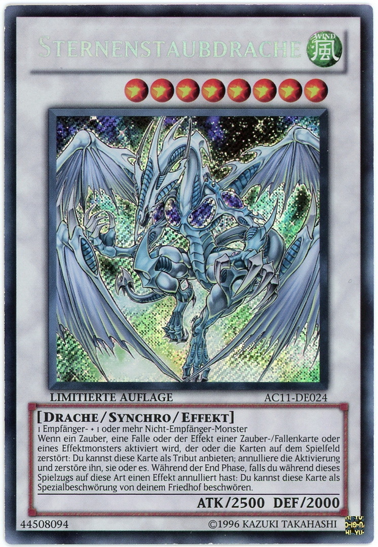 AC11-DE024 Stardust Dragon Secret Rare UK/US/Worldwide Tournament Legal Limited Edition GERMAN YuGiOh Card - "Sternenstaubdrache " -