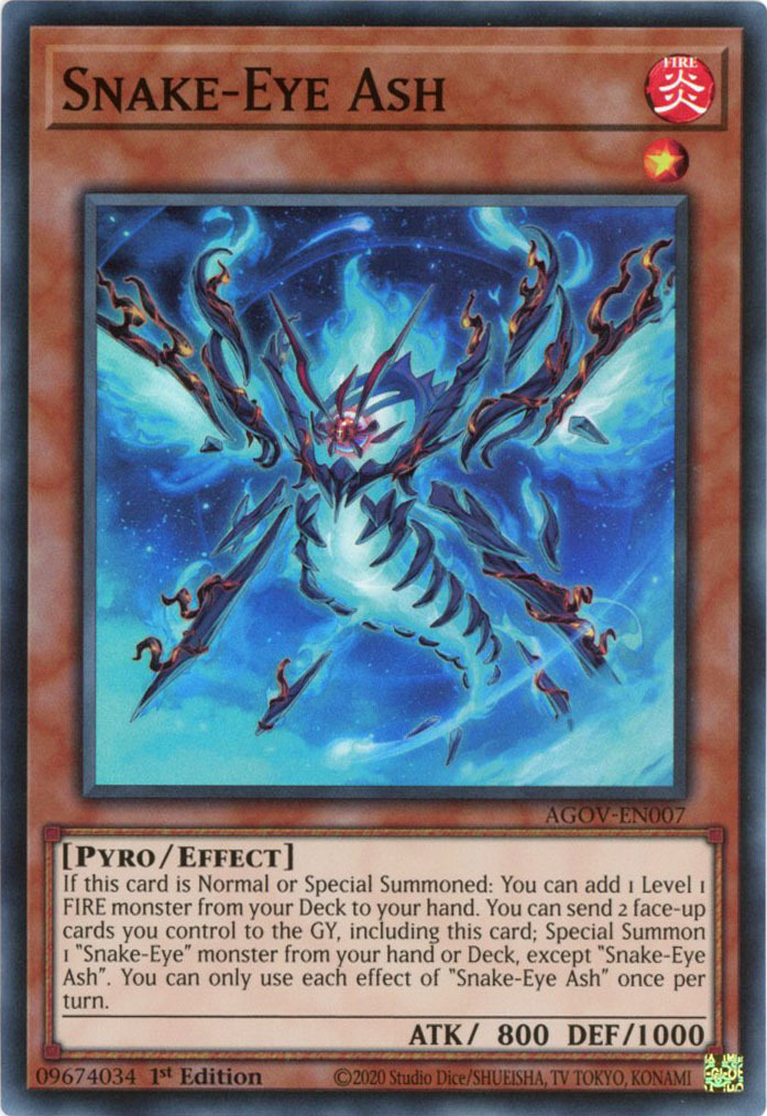 - AGOV-EN007 Snake-Eye Ash :: Super Rare 1st Edition YuGiOh Card
