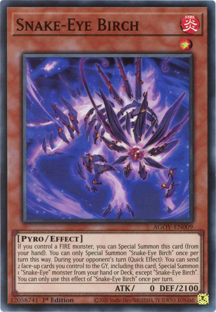 - AGOV-EN009 Snake-Eye Birch :: Super Rare 1st Edition YuGiOh Card