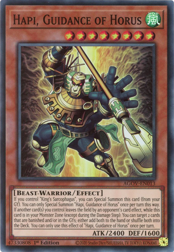 - AGOV-EN013 Hapi, Guidance of Horus :: Super Rare 1st Edition YuGiOh Card