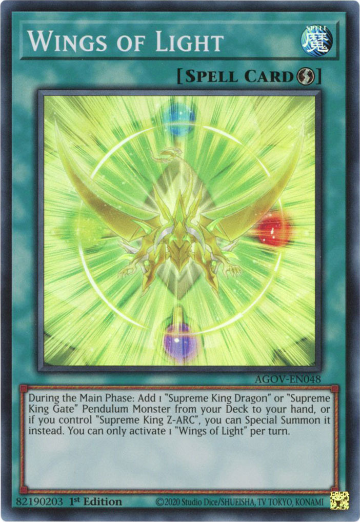 - AGOV-EN048 Wings of Light :: Super Rare 1st Edition YuGiOh Card