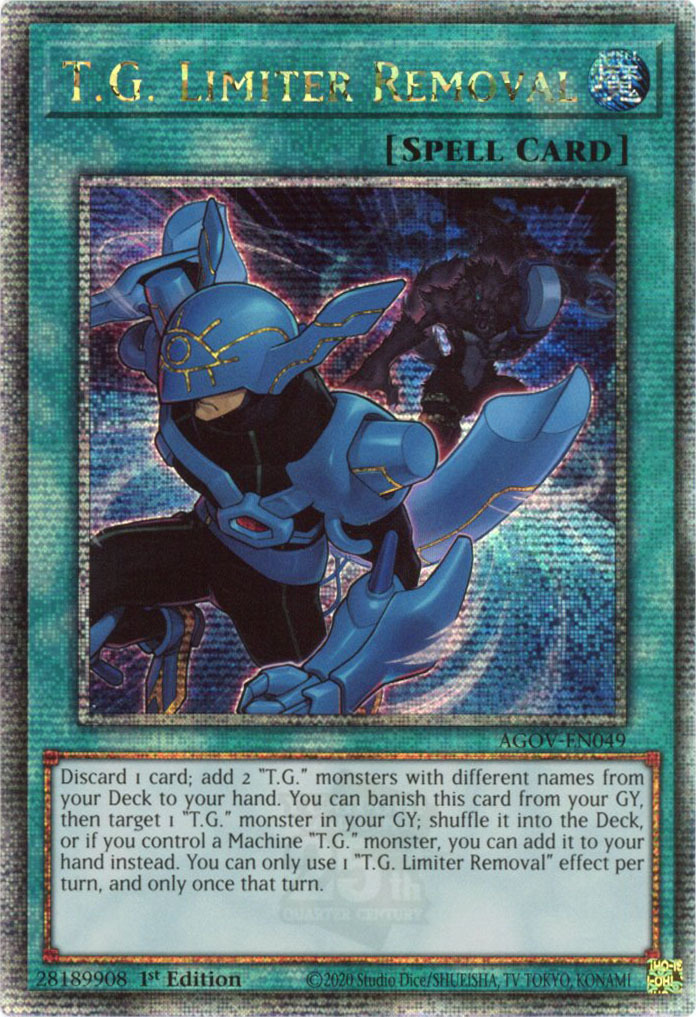 - AGOV-EN049 T.G. Limiter Removal :: Quarter Century Secret Rare 1st Edition YuGiOh Card