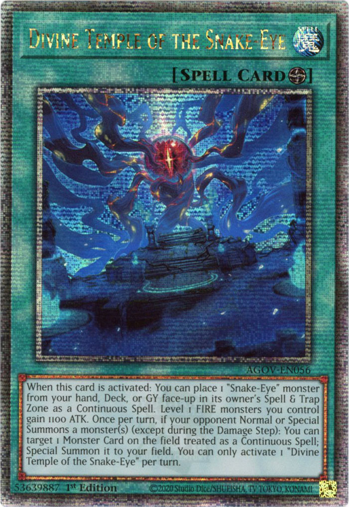 - AGOV-EN056 Divine Temple of the Snake-Eye :: Quarter Century Secret Rare 1st Edition YuGiOh Card