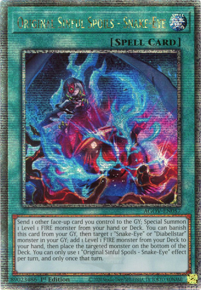- AGOV-EN057 Original Sinful Spoils - Snake-Eye :: Quarter Century Secret Rare 1st Edition YuGiOh Card
