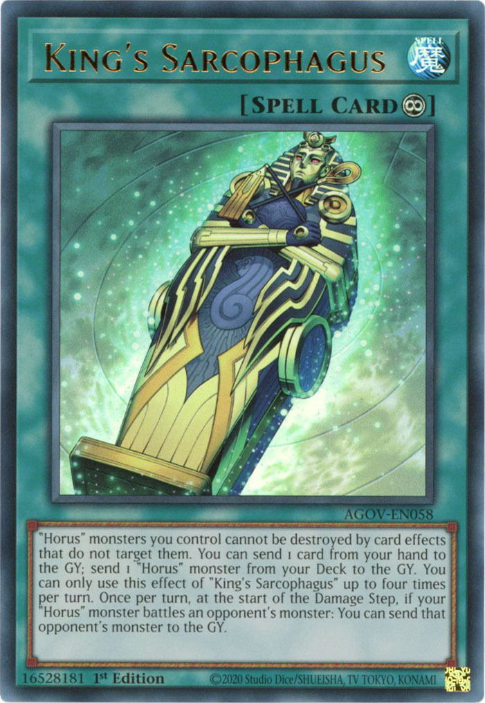 - AGOV-EN058 King's Sarcophagus :: Ultra Rare 1st Edition YuGiOh Card