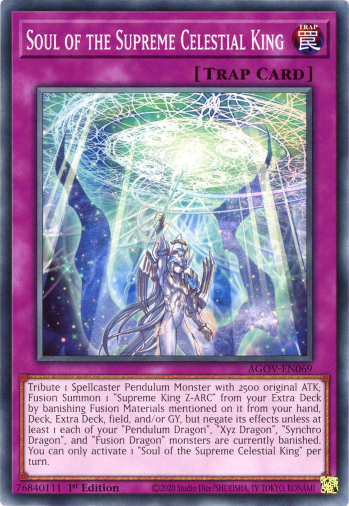 - AGOV-EN069 Soul of the Supreme Celestial King :: Common 1st Edition YuGiOh Card