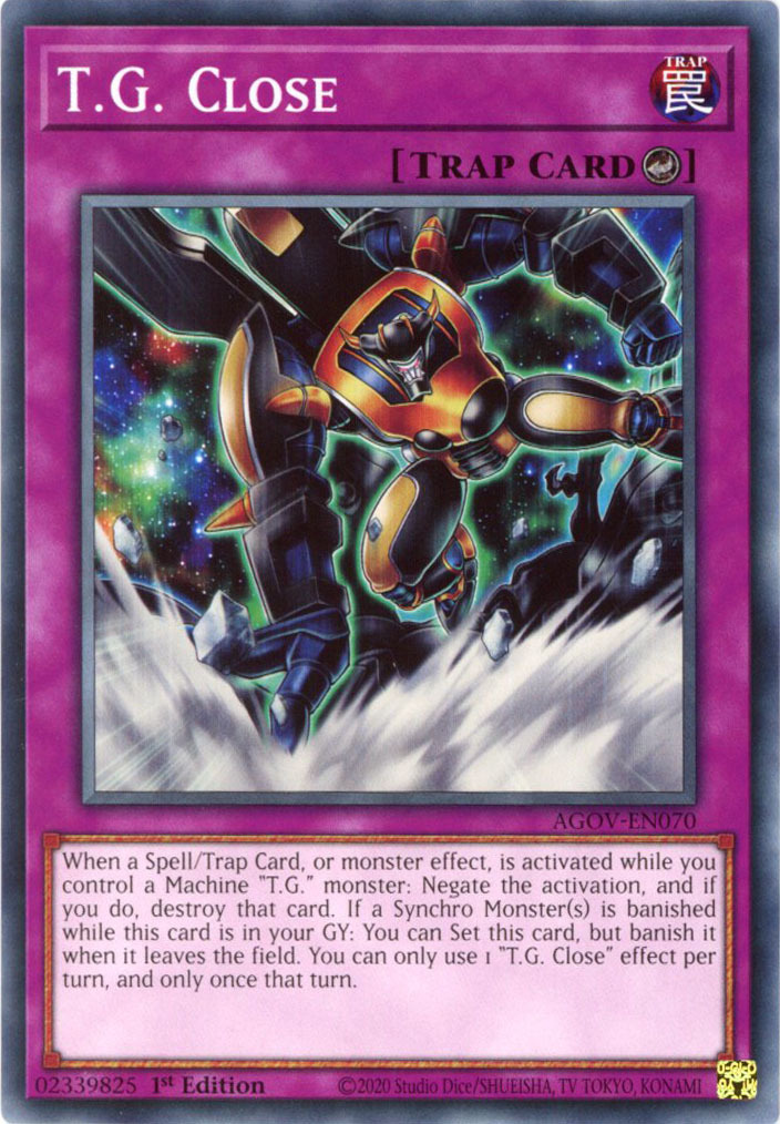 - AGOV-EN070 T.G. Close :: Common 1st Edition YuGiOh Card