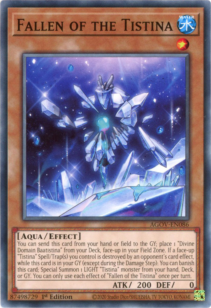 - AGOV-EN086 Fallen of the Tistina :: Common 1st Edition YuGiOh Card