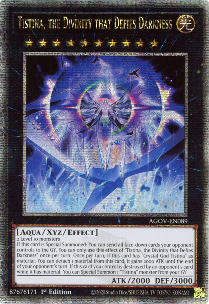 - AGOV-EN089 Tistina, the Divinity that Defies Darkness :: Quarter Century Secret Rare 1st Edition YuGiOh Card