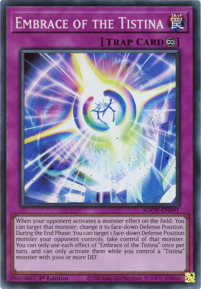- AGOV-EN091 Embrace of the Tistina :: Super Rare 1st Edition YuGiOh Card