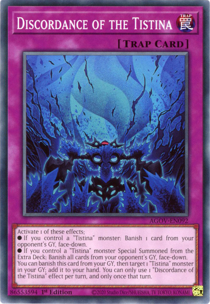 - AGOV-EN092 Discordance of the Tistina :: Common 1st Edition YuGiOh Card