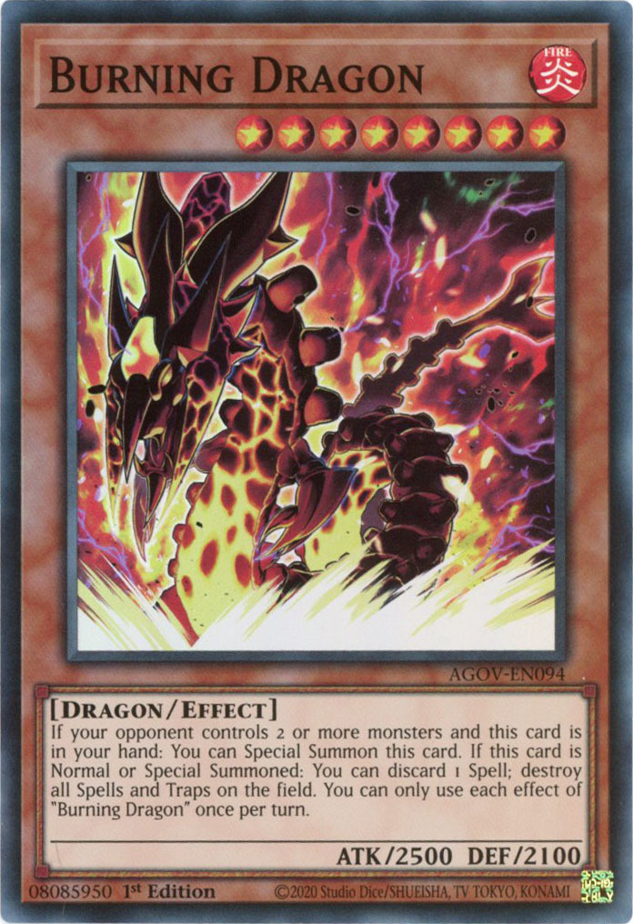 - AGOV-EN094 Burning Dragon :: Super Rare 1st Edition YuGiOh Card