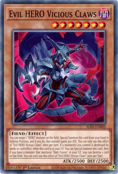 - ALIN-EN005 Evil HERO Vicious Claws : Common 1st Edition Mint YuGiOh Card