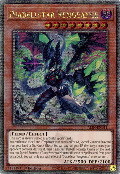- ALIN-EN011 Diabellstar Vengeance : Quarter Century Secret Rare 1st Edition Mint YuGiOh Card