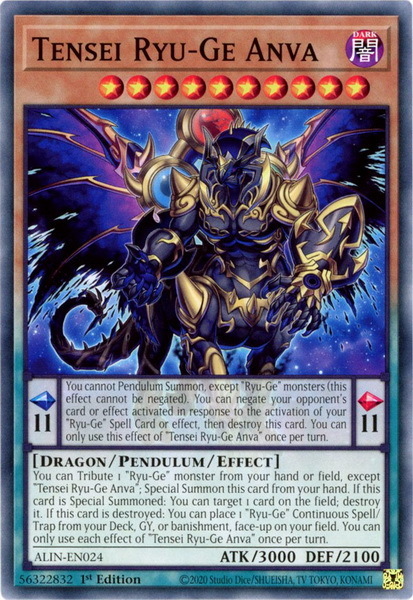 - ALIN-EN024 Tensei Ryu-Ge Anva : Common 1st Edition Mint YuGiOh Card