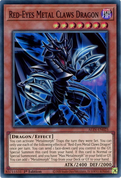 - ALIN-EN025 Red-Eyes Metal Claws Dragon : Super Rare 1st Edition Mint YuGiOh Card
