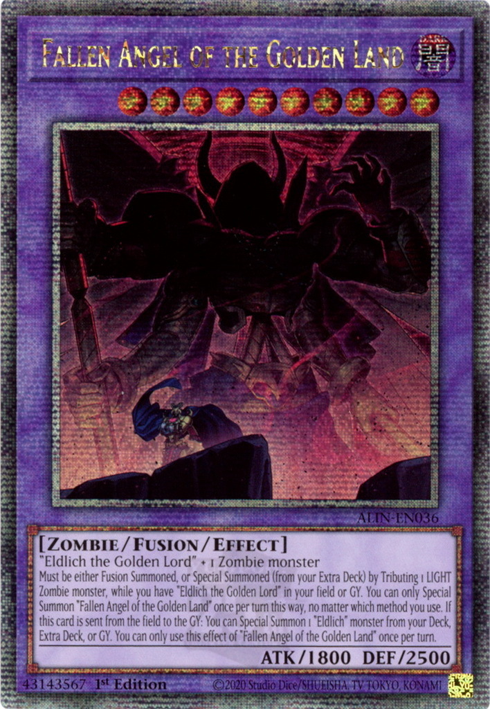 - ALIN-EN036 Fallen Angel of the Golden Land : Quarter Century Secret Rare 1st Edition Mint YuGiOh Card