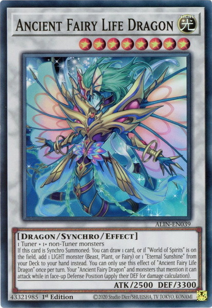 - ALIN-EN039 Ancient Fairy Life Dragon : Super Rare 1st Edition Mint YuGiOh Card