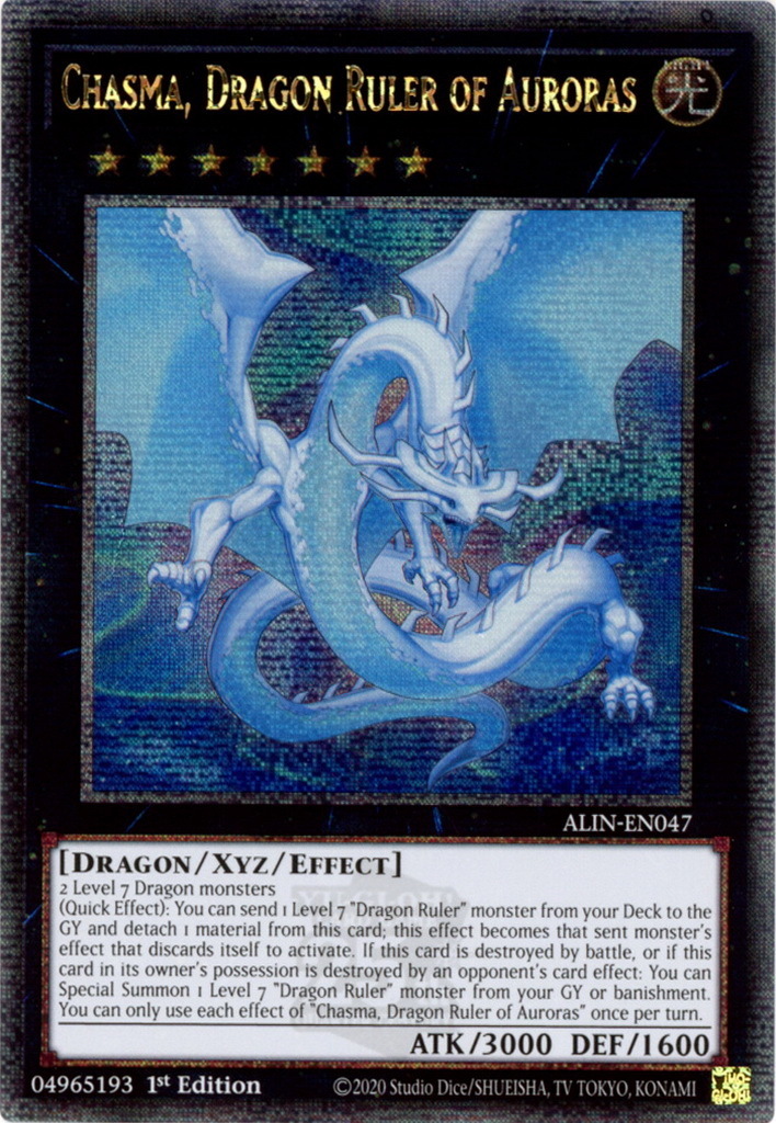- ALIN-EN047 Chasma, Dragon Ruler of Auroras : Quarter Century Secret Rare 1st Edition Mint YuGiOh Card