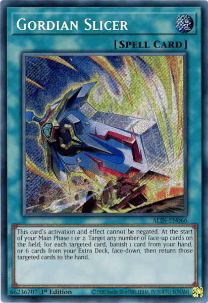 - ALIN-EN066 Gordian Slicer : Secret Rare 1st Edition Mint YuGiOh Card