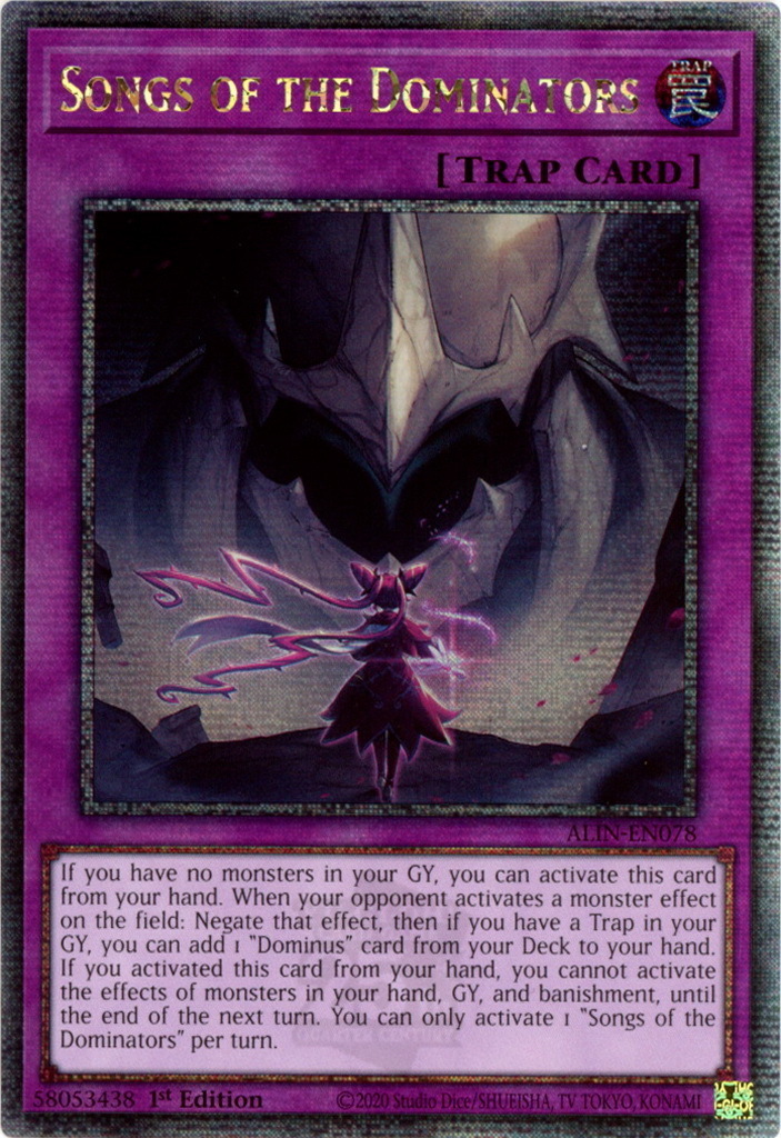 - ALIN-EN078 Songs of the Dominators : Quarter Century Secret Rare 1st Edition Mint YuGiOh Card