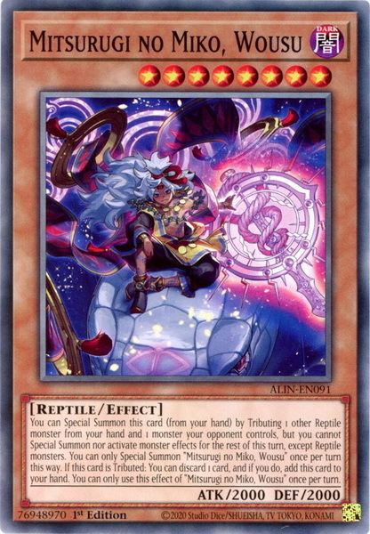 - ALIN-EN091 Mitsurugi no Miko, Wousu : Common 1st Edition Mint YuGiOh Card