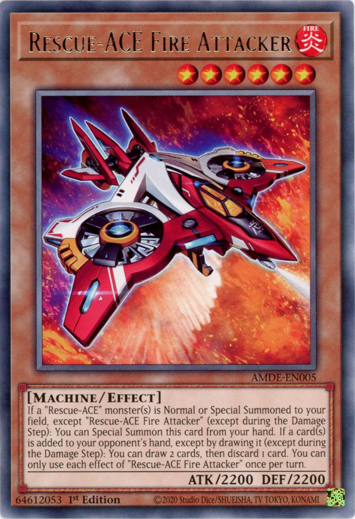 - AMDE-EN005 Rescue-ACE Fire Attacker :: Rare 1st Edition Mint YuGiOh Card