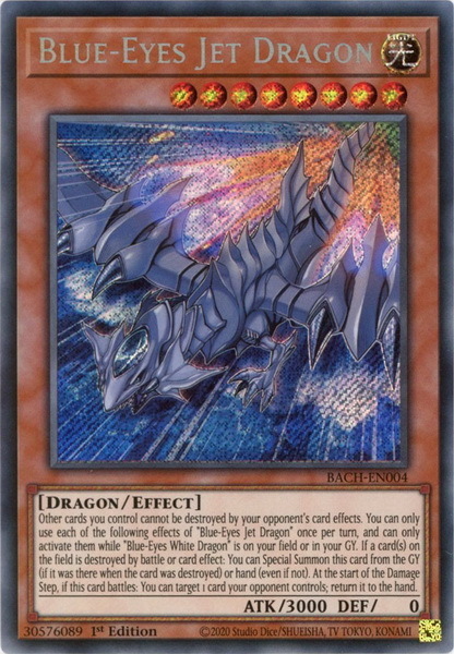 - BACH-EN004 Blue-Eyes Jet Dragon Secret Rare 1st Edition Mint YuGiOh Card