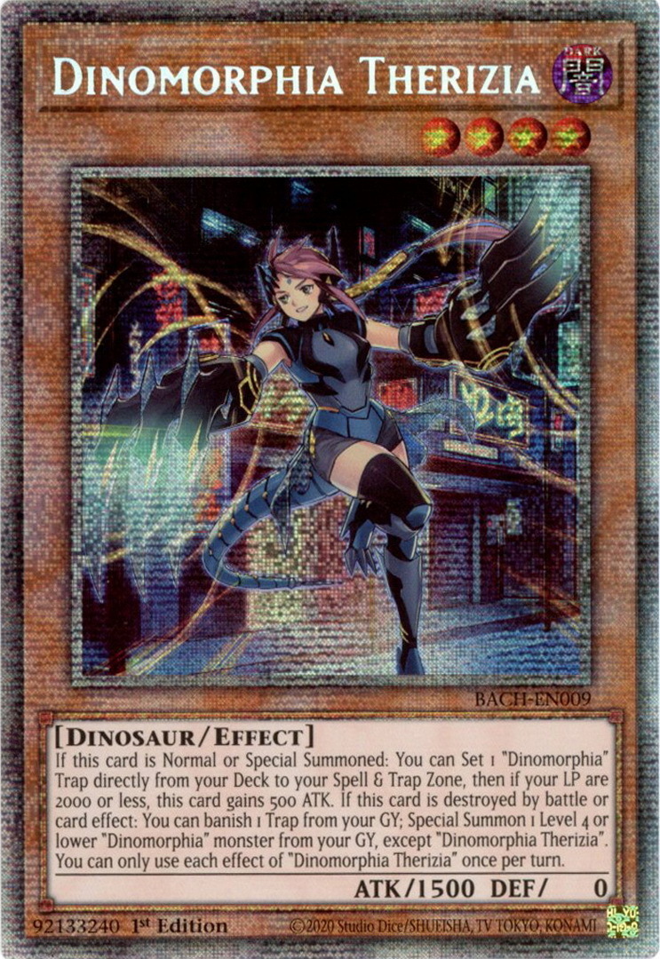 - BACH-EN009 Dinomorphia Therizia Starlight Rare 1st Edition Mint YuGiOh Card