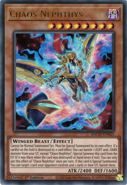 - BACH-EN025 Chaos Nephthys Ultra Rare 1st Edition Mint YuGiOh Card