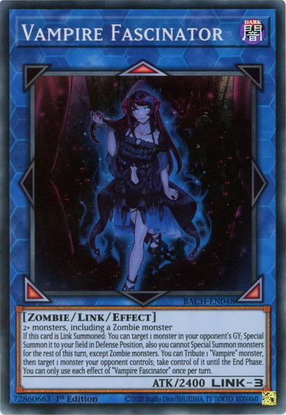 - BACH-EN048 Vampire Fascinator Super Rare 1st Edition Mint YuGiOh Card