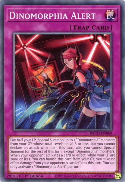 - BACH-EN069 Dinomorphia Alert Common 1st Edition Mint YuGiOh Card