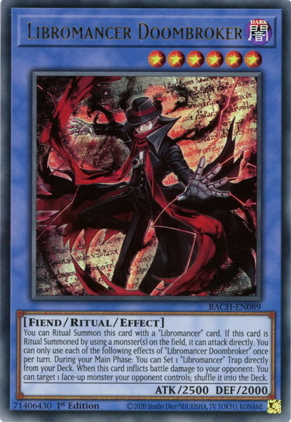 - BACH-EN089 Libromancer Doombroker Ultra Rare 1st Edition Mint YuGiOh Card