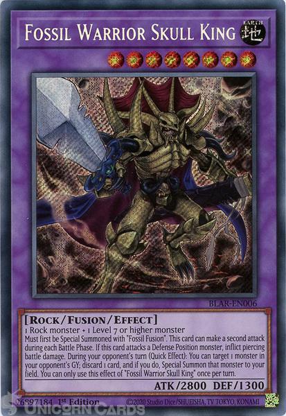 - BLAR-EN006 Fossil Warrior Skull King Secret Rare 1st Edition Mint YuGiOh Card
