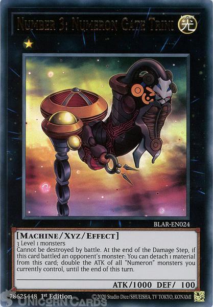 - BLAR-EN024 Number 3: Numeron Gate Trini Ultra Rare 1st Edition Mint YuGiOh Card